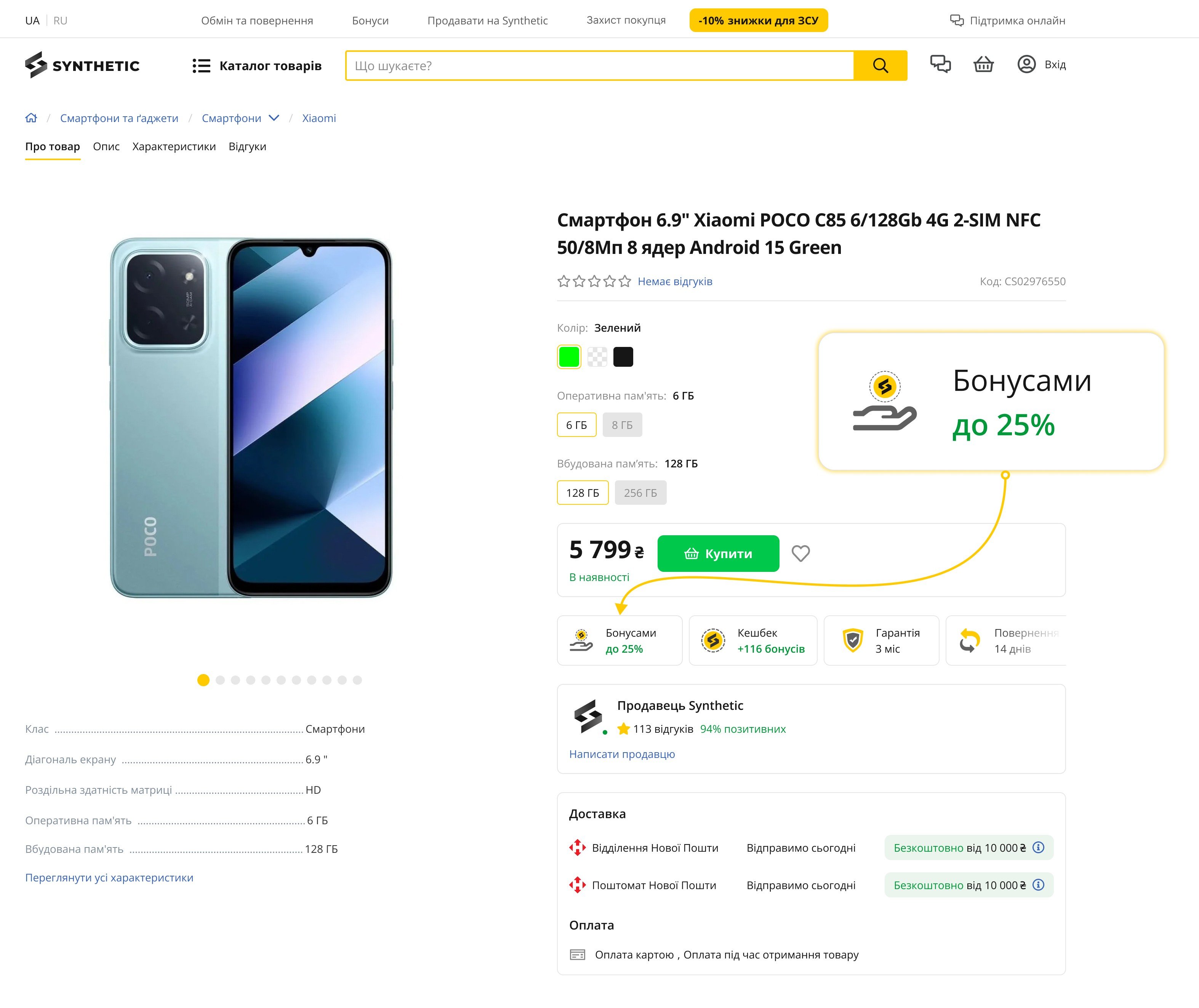 Якщо на сторінці товару в блоці ціни зазначено «Оплата бонусами», ви можете самостійно обрати розмір знижки або оплатити товар бонусами повністю.